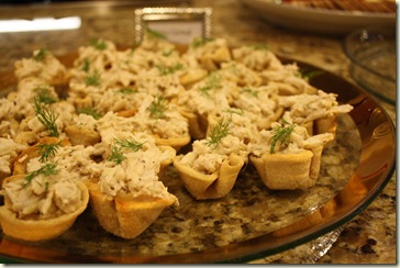 Last week I made a two appetizers for my swap party: Bacon Jam and Crab Salad Toast Cups. The crab salad by itself tastes great but what makes it even better are the little buttered bread cups you put it in.