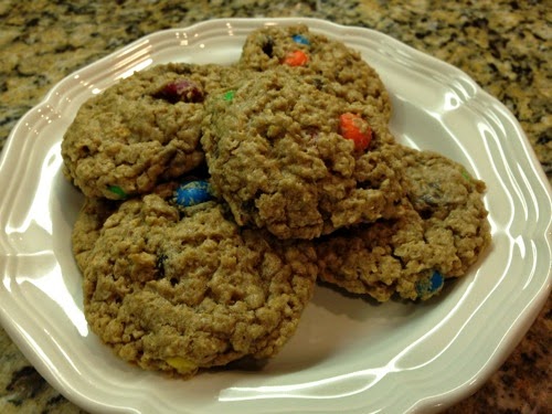 We went to my son's basketball game (they lost). :( We came home and I got the baking bug so I baked the Monster Cookies.